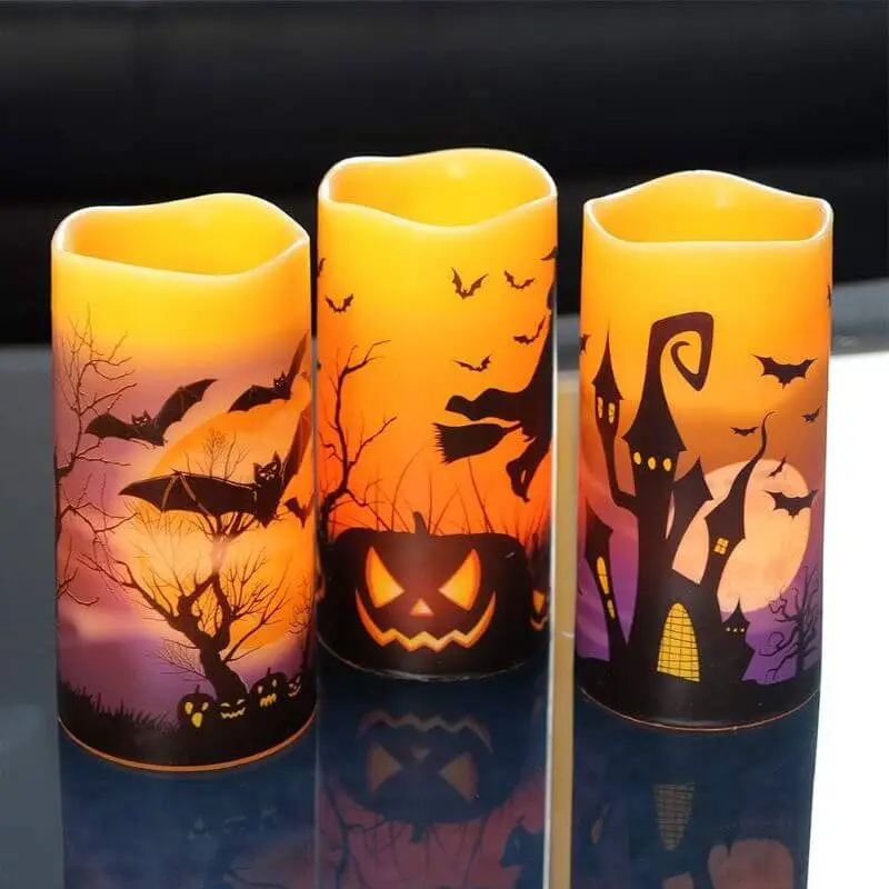 Halloween fake candles, Halloween flameless candles for sale, faux candles with timer