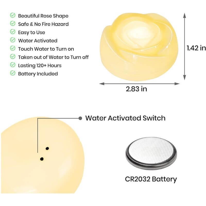 Crafted from premium polished plastic, each candle measures 2.83″ x 1.42″ and features smart water-activated technology – simply place them in the water and they automatically turn on, then switch off when removed. With over 120 hours of continuous glow time, thanks to the pre-installed long-lasting CR2032 batteries, you can enjoy soft, flickering light without worrying about frequent replacements.