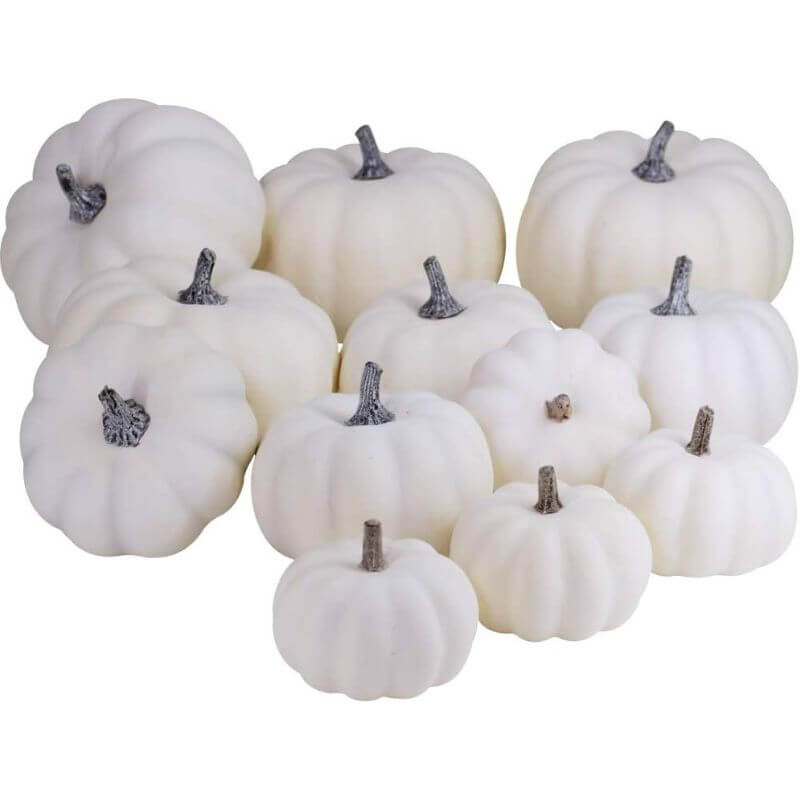12 PCS Assorted Sizes Rustic Harvest White Artificial Pumpkins for Halloween, Fall Thanksgiving Decorating Harvest Embellishing and Displaying